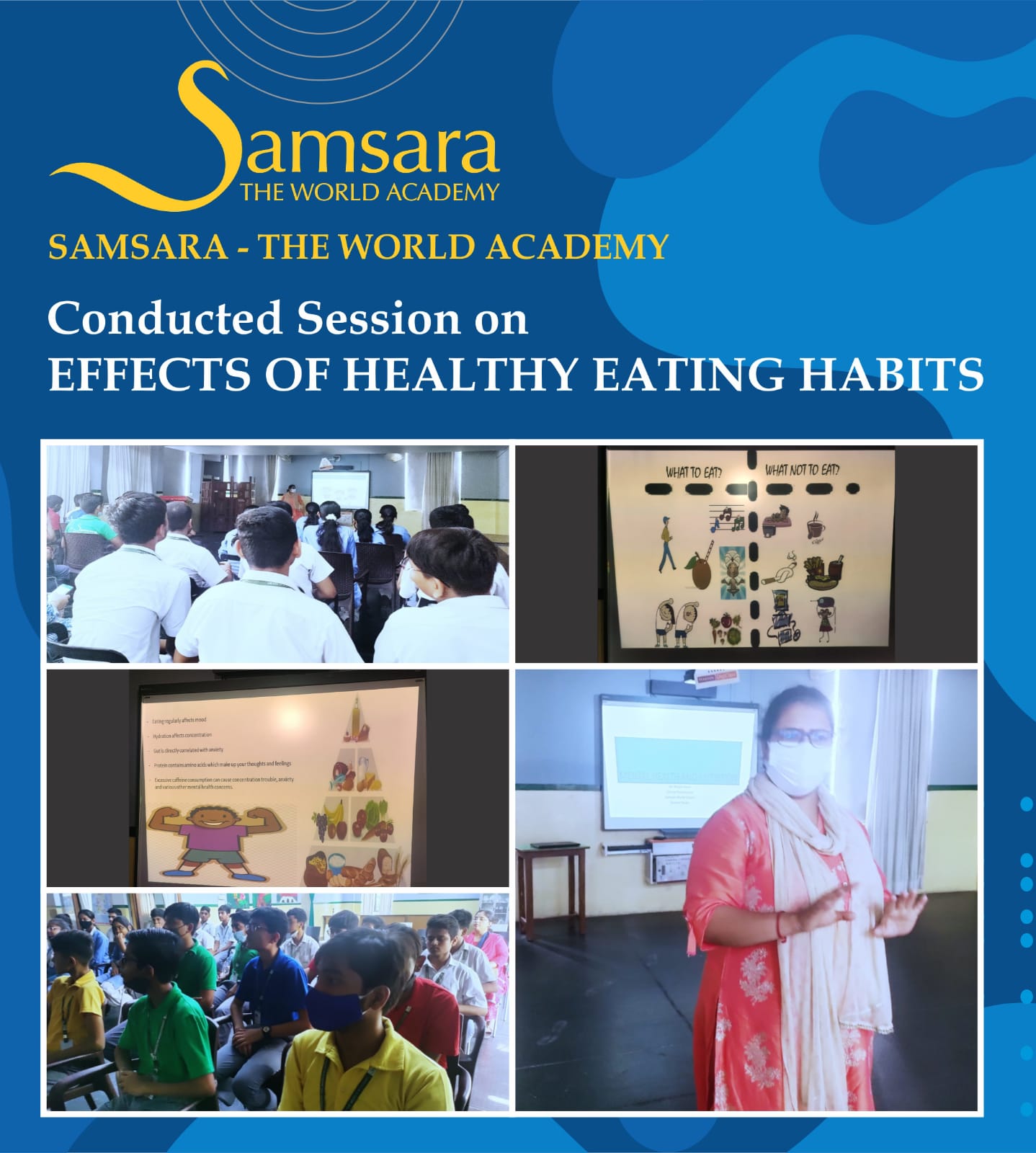 Keeping this thought in mind Samsara -The World Academy organized a webinar on *' Effect of Healthy Eating Habit on Mental Health* for the students of classes VII and VIII on 23 September, 2022 and class IX on 30 September, 2022.