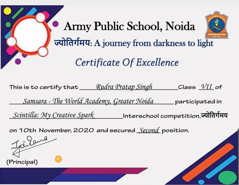 A little victory gives great joys. Samsara-The World Academy feels elated to share that our students brought laurels by winning prizes at an Inter School Competitions organised by Army Public School, Noida, on 10th November, 2020.