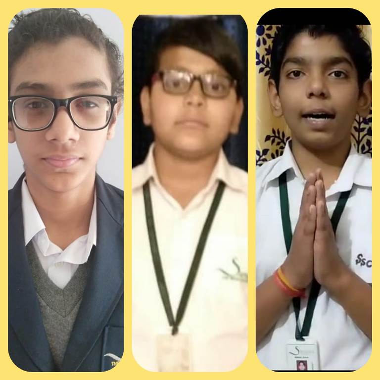 *Gaurav Dangwal, Rudra Pratap Singh and Prakhar Tiwari of class 7th bagged Second position in Santilla: ‘My Creative Spark’