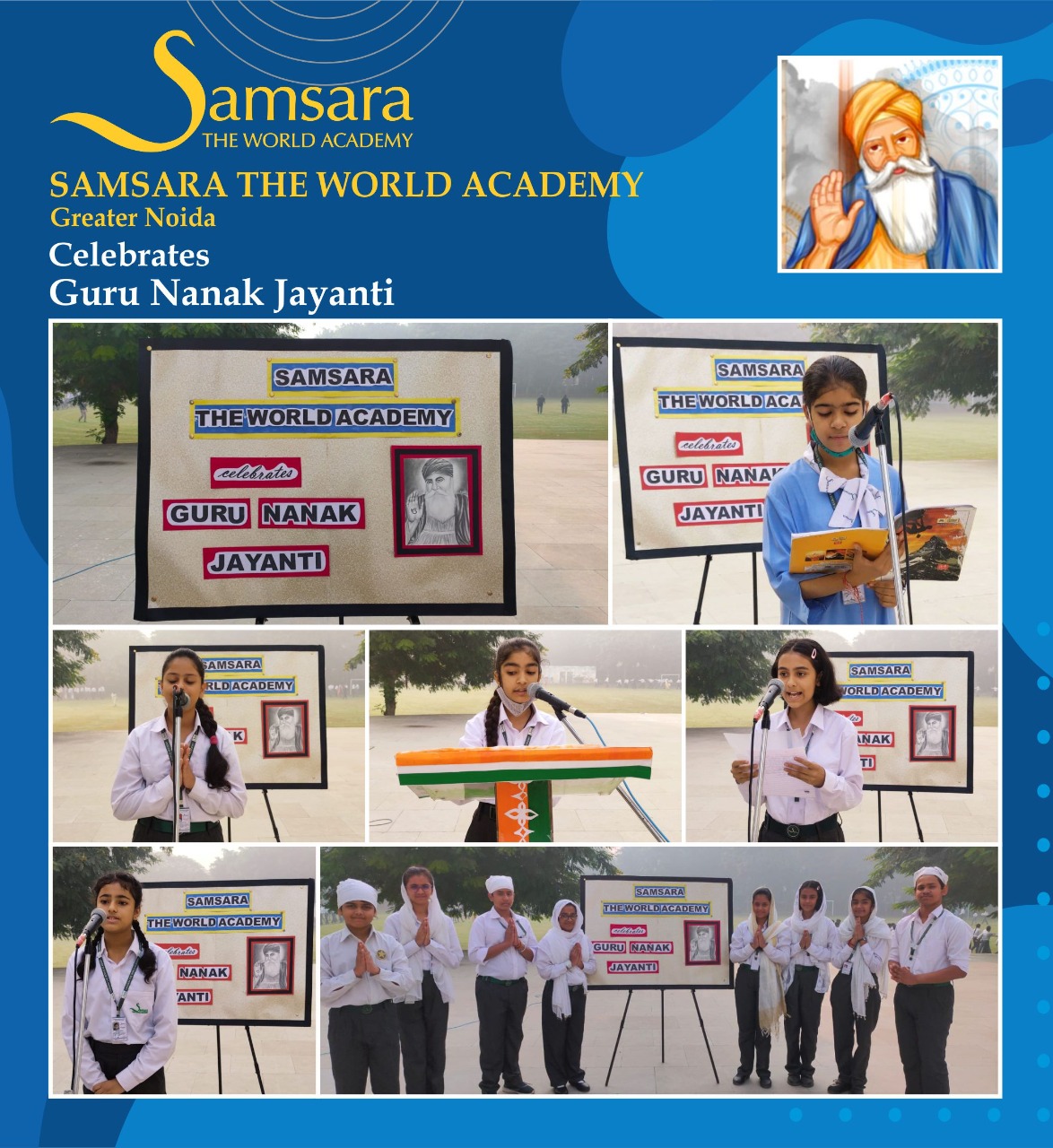 Samsara - The World Academy celebrated Guru Nanak Jayanti on 3 November 2022. The students of grade VII commenced the assembly. The day began with prayer, thought of the day, and news headlines.