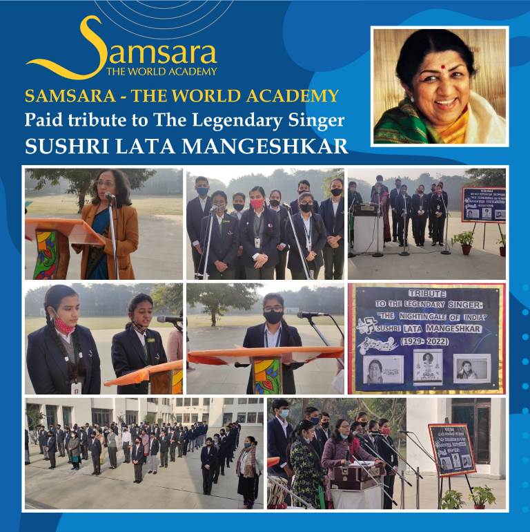 Samsara -The World Academy conducted a special assembly on 8th February 2022, to pay tribute and honour to the legendary singer and 'Bharat Ratna Award' winner Lataji.