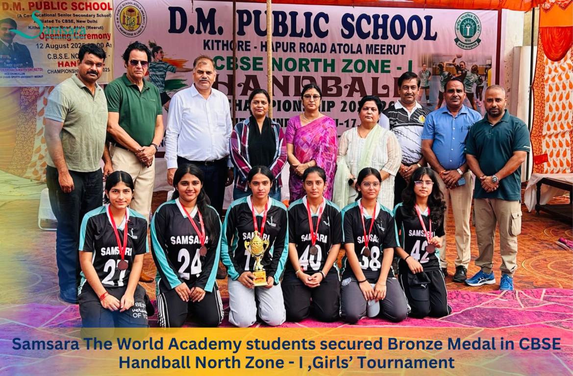 We are proud to announce that students of Samsara The World Academy bagged Third position, Bronze medal in the CBSE Handball North Zone I Girls' Tournament held at D.M. Public School, Hapur (Meerut Road) from 12th August to 14th August. A total of 48 schools participated in the tournament with great enthusiasm and sportsmanship. The event provided a wonderful platform for young players to showcase their talent, teamwork, and competitive spirit. We congratulate our girls and wish them more success.