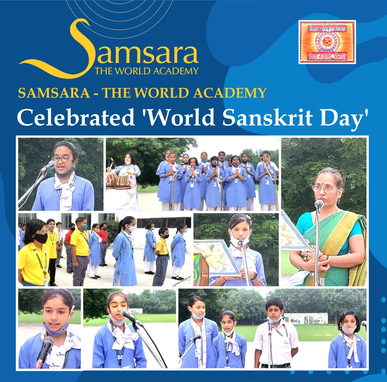 The words turned true as Samsara - The World Academy celebrated ' The Sanskrit Day' during the morning assembly with great pride. The assembly started with the prayer and chanting of shlokas followed by the explanation. The students of classes 6-8 recited hymns, and shlokas and also gave speeches on how important the language is.