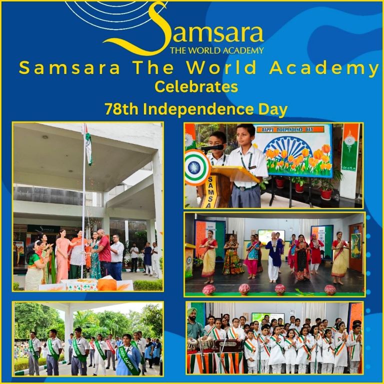 Samsara The World Academy celebrated Independence Day on 15th August 2024 with great enthusiasm. Major Neetu Singh Senger honoured the event with her presence thus adding to its significance. The students passionately participated in cultural performances, expressing their patriotism through vibrant renditions. Speeches were delivered by the School Captain and Sports Captain, highlighting the spirit of the day. The celebration concluded with a vote of thanks, marking the end of a memorable event.