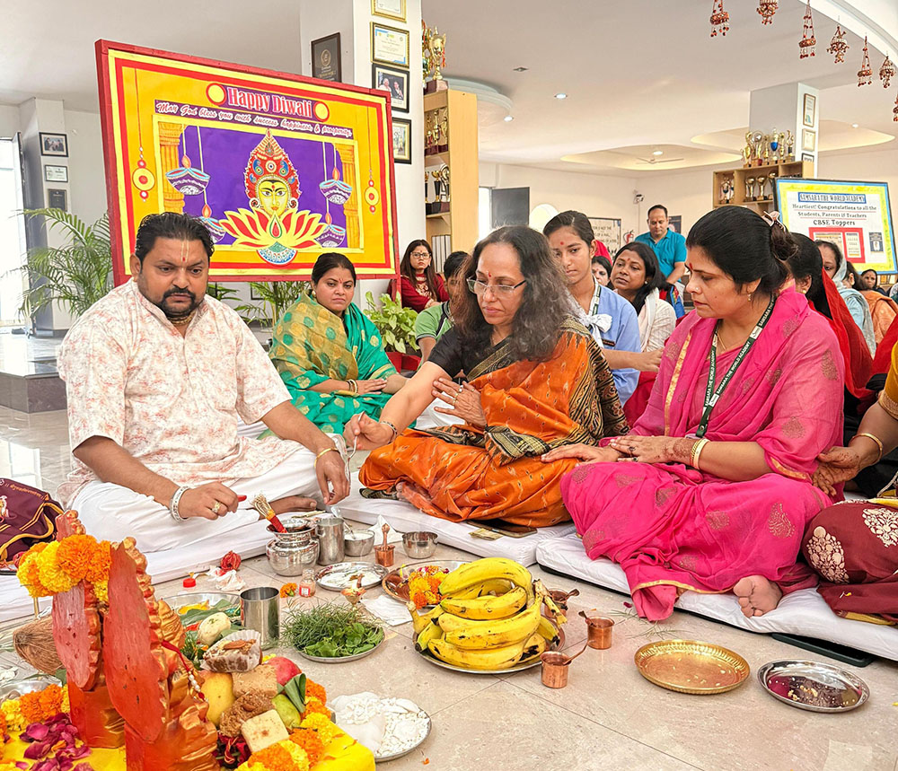 "Samsara The World Academy celebrated the auspicious occasion of Diwali with great devotion and joy on October 18, 2025. The school conducted a traditional Diwali puja to seek the blessings of the Almighty for prosperity, peace, and happiness & growth of school. The ceremony was attended by Capt. Praveen Roy, the principal, all the coordinators, admin staff, and teachers, along with the enthusiastic participation of the school students' council members. The atmosphere was filled with positivity and festive spirit & spirituality with chanting of mantras when everyone came together to invoke divine blessings and celebrate the festival of lights with warmth and togetherness."