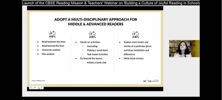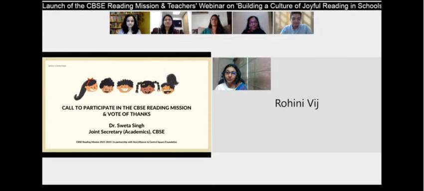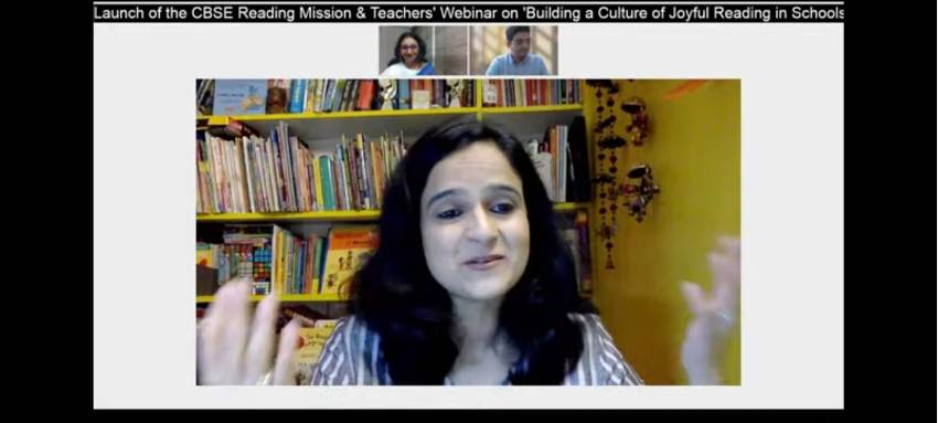 Our English facilitators Ms Reema Sharma, Ms Aparna Tiwari, Ms Shipra Garg and Ms Alisha Sinha attended a webinar on 20th, September 2021 on the topic 'Building a Culture of Joyful Reading in School' - a launch of the CBSE Reading Mission 2021-2023. It is a two-year initiative to promote Reading Literacy among young learners. It was conducted by CBSE, in association with Pratham Book Story Weaver and Central Square Foundation.
