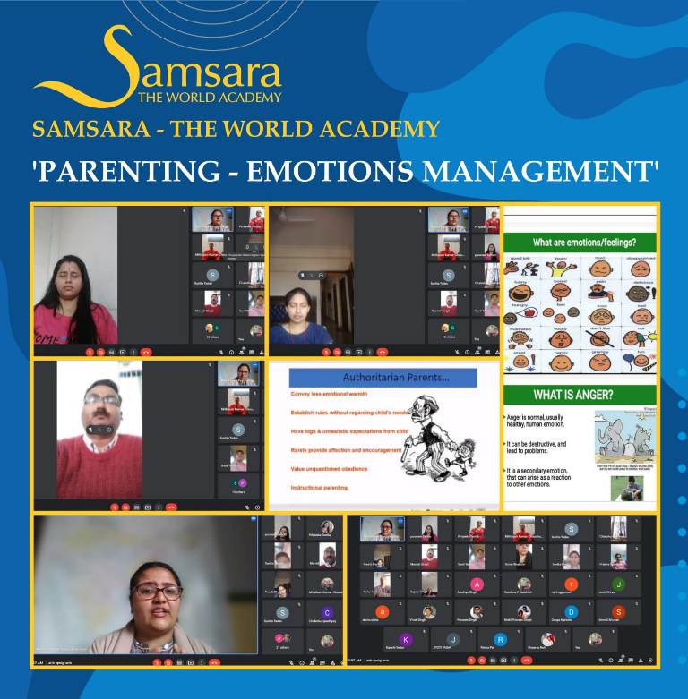 Samsara-The World Academy organised a counselling session on 25th February 2022, for the parents of Classes I and II on 'Managing Emotions'. The session was hosted by our counsellor Ms Megha Sarin, a clinical psychologist.