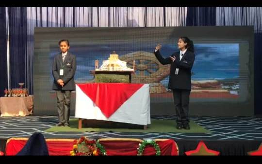 Kanishk Kumar of class 5A and Aliza Fatima of class 5B talked about the heritage site - Fatehpur Sikri and the historical background of Buland Darwaza. Srijina Raj and Drishti Jha of class 6A explained the contribution of Sanchi Stupa in Indian architecture.