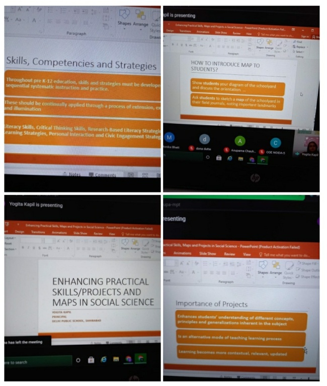 The resource person, Ms.Yogita Kapil, Principal, Delhi Public School, Sahibabad, discussed the uses and teachings of Map as skill learning for students. She gave various examples of different Map skills and explained how we can use personal interaction and competency as teaching strategies. She also told about the project work of class 9th, 10th and marks weightage. It was an enriching experience that added more value to the competence of the teachers. |
