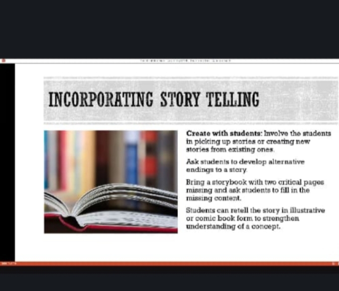 The resource person Dr. Priyanka Mehta highlighted the art of story telling in the classroom. She provided different creative ideas of story telling. She explained that how we can be a storyteller and being a teacher we can use it as a pedagogical tool, which helps to foster imagination , explore diversity, discover a variety of ways to create stories and to integrate the curriculum too. It is yet another device in the repertoire of a good teacher and a powerful form of communication for both teachers and students.