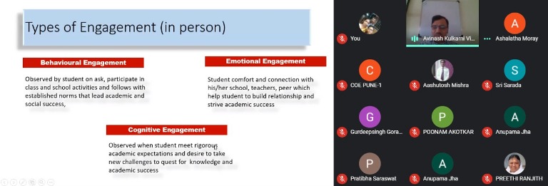 The resource person discussed different types of engagement i.e. behavioral, emotional and cognitive engagement. He also highlighted different modes of online teaching viz. Synchronous and Asynchronous. The Digital learning ecosystem consists of connected users, digital micro content, smart delivery system and analytic engine. The participants got new ideas of digital learning which helped them in enhancing their skills and knowledge. |