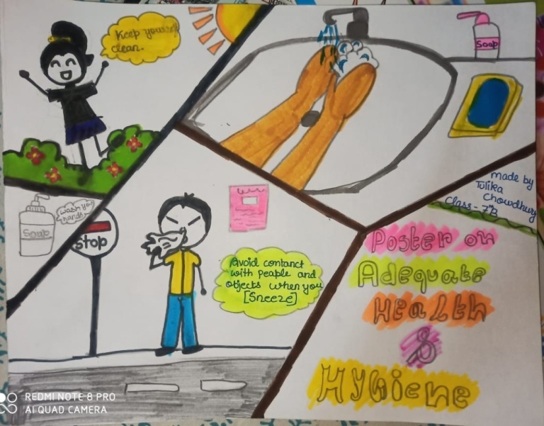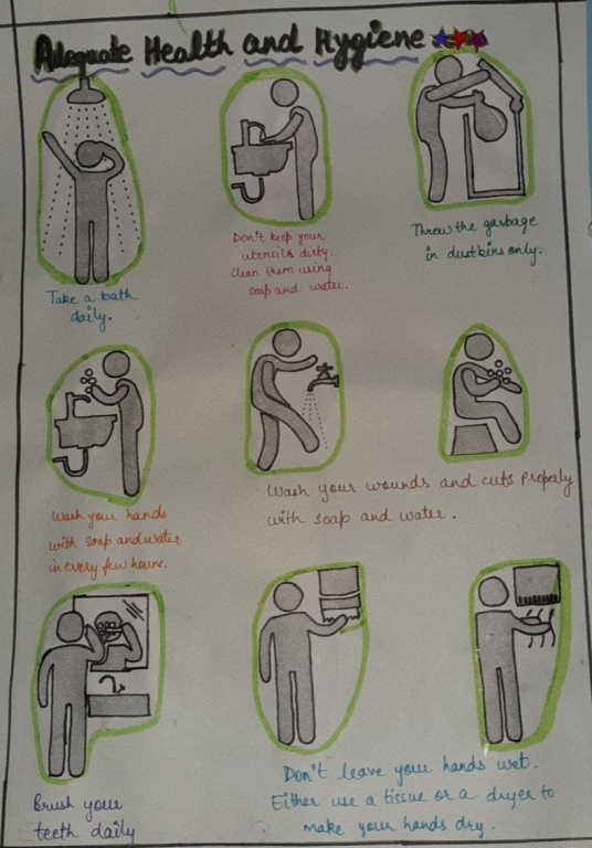 The students of Class VII made beautiful posters on the topic Adequate Health and Hygiene Practices in their Moral Science subject. Students shared their knowledge with the help of the posters and also emphasised on adopting adequate health and hygiene practices in daily life as It's very important to keep ourselves healthy and disease free. |