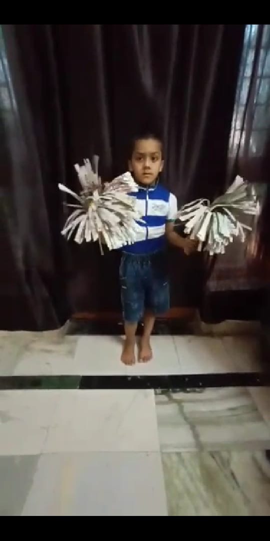 Children not only performed this activity in a very creative way but also made beautiful Pom-Poms at home using news papers and gift papers.This activity helped in enhancing their flexiblity and building confidence. |