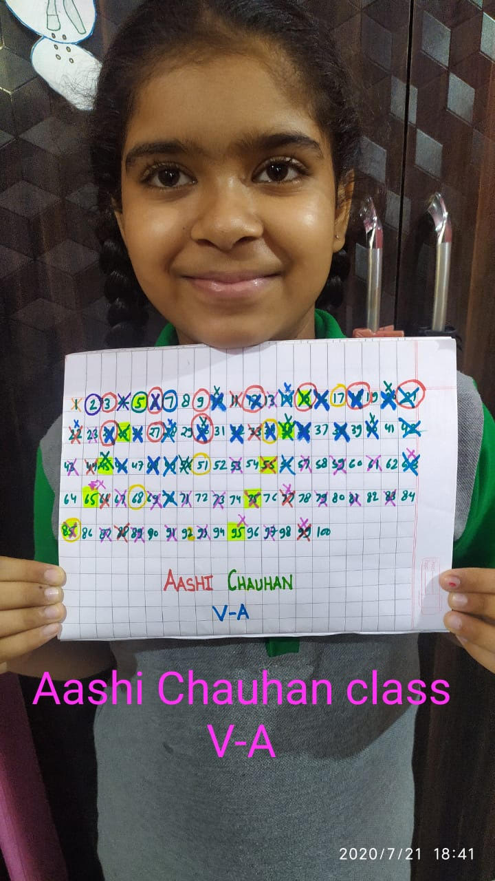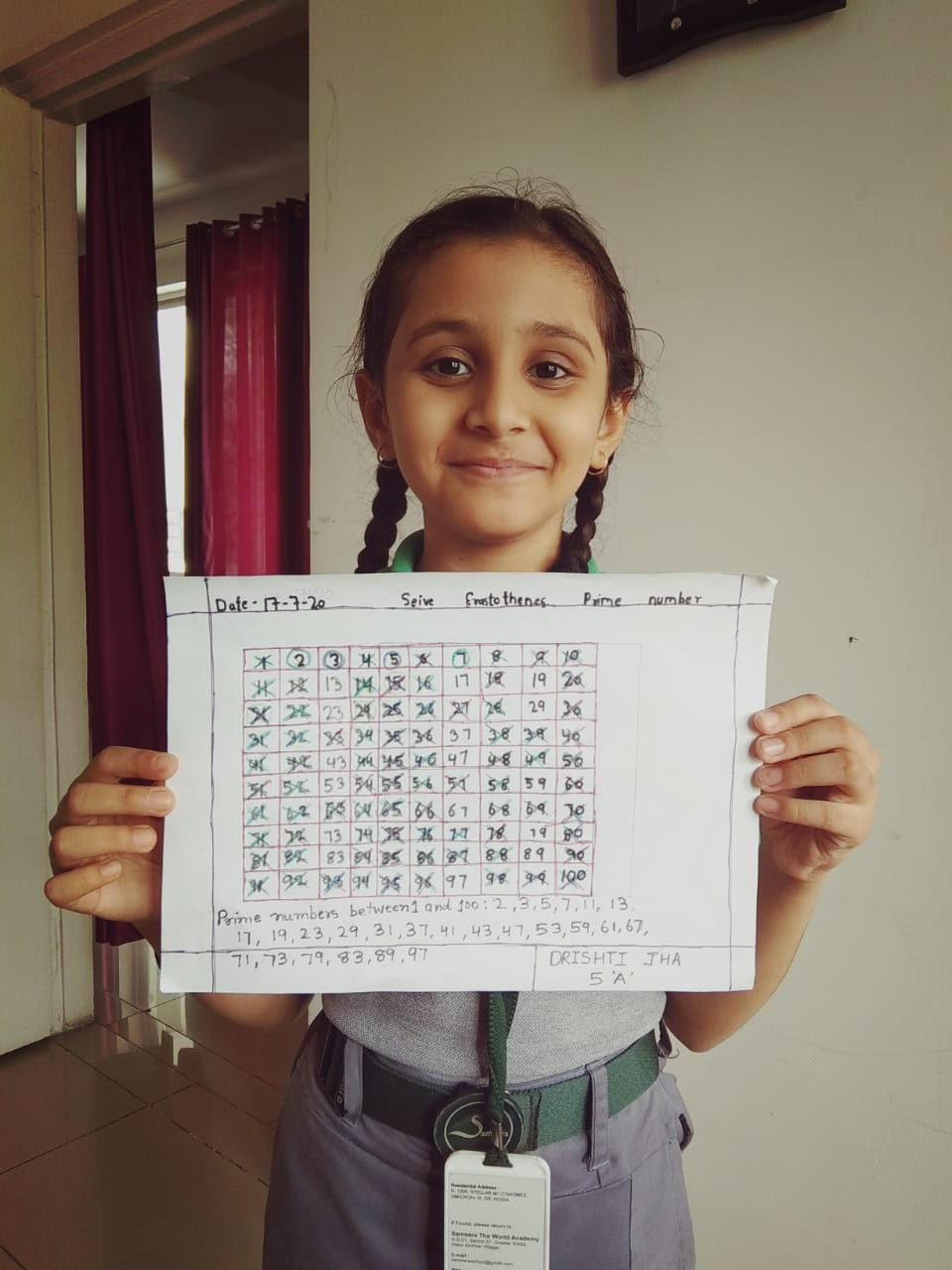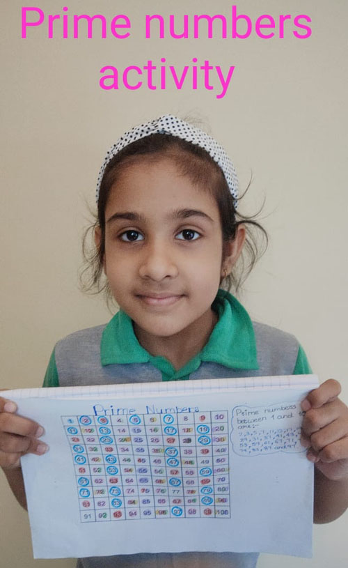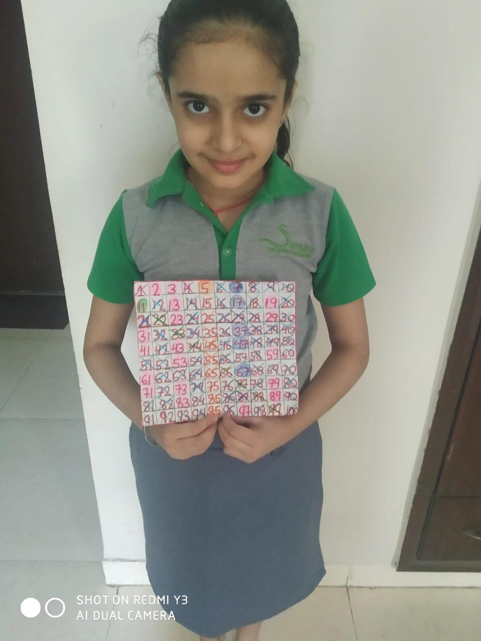 Our Maths teachers taught students of class V, in a fun way, to find and have a record of prime and composite numbers through a very engaging activity called Sieve of Eratosthenes. It is a simple and ancient algorithm used to find the prime numbers up to any given limit. It is one of the most efficient ways to find small prime numbers.