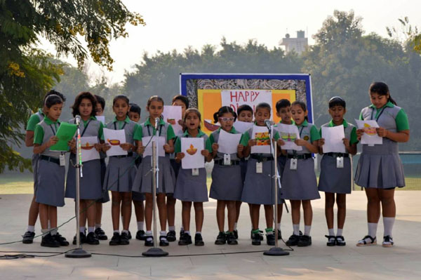 The spirit of Diwali slowly and softly stepped into the studious environment of Samsara The World Academy through a special assembly conducted by Class IV. During the assembly, the children pledged to celebrate a pollution-free Diwali by lighting lamps, sharing gifts and visiting friends. The Principal appreciated the students and reinforced the theme of Green Diwali.
