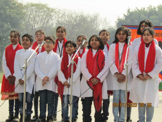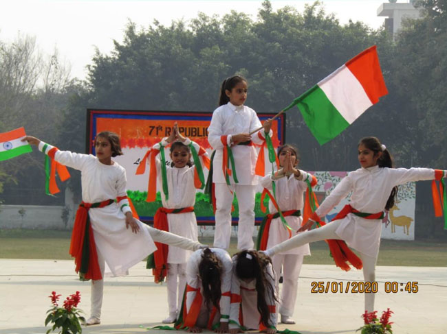 The 71st Republic Day was celebrated on 25th Jan 2020. Students from classes 3rd to 5th participated in the celebration. Our little stars sang many patriotic songs, poems and staged a dance performance. Children from Robinhood Army were also welcomed .They actively participated in the games and thoroughly enjoyed in it. The special assembly got a befitting closure by the encouraging words from our Principal Captain Praveen Roy. An oath was taken by the staff, students and teacher's for Beti Bachao, Beti Padhao campaign for the cause of girl education and empowerment.. |