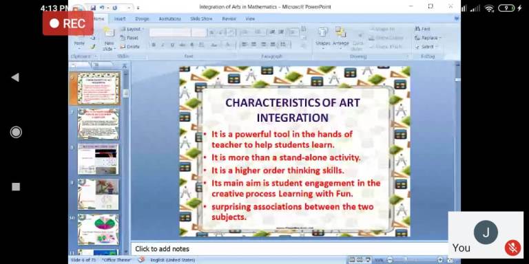 She also highlighted the ideas given on the CBSE website and encouraged all the participants about the use of technology and tools like Geogebra, Tessellation, Desmos etc.