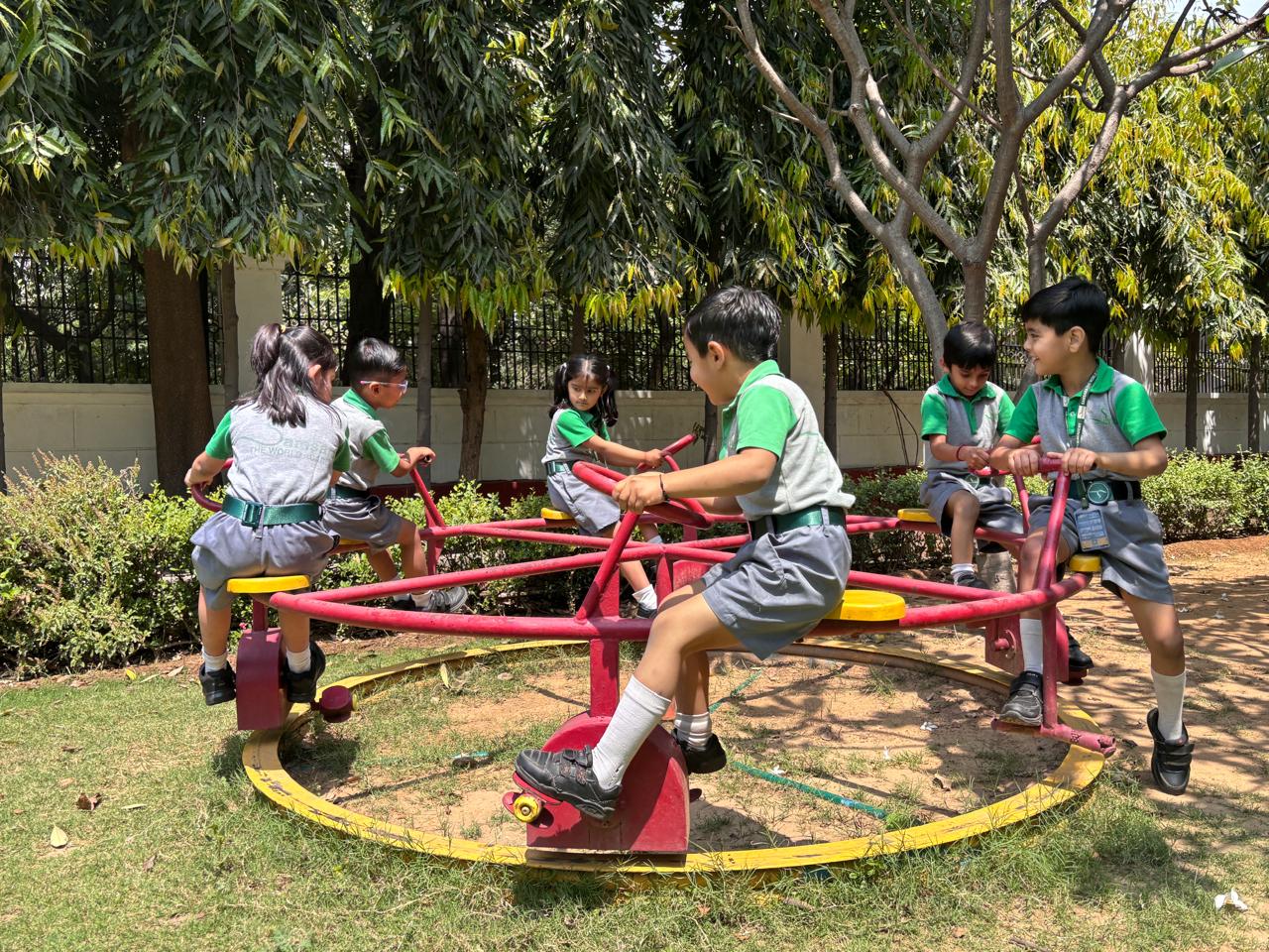 The Kids’ Play Area at Samsara The World Academy is a vibrant, safe, and thoughtfully designed space for young learners. Equipped with swings, slides, see-saws, and engaging play features, it promotes physical activity, balance, and coordination.